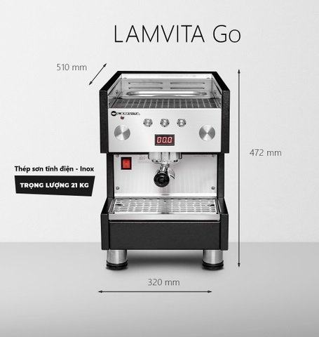 Máy pha cafe Lamvita GO sở hữu kích thước compact, phù hợp không gian hạn chế nhưng vẫn mang đầy đủ tính năng của một máy pha chuyên nghiệp: